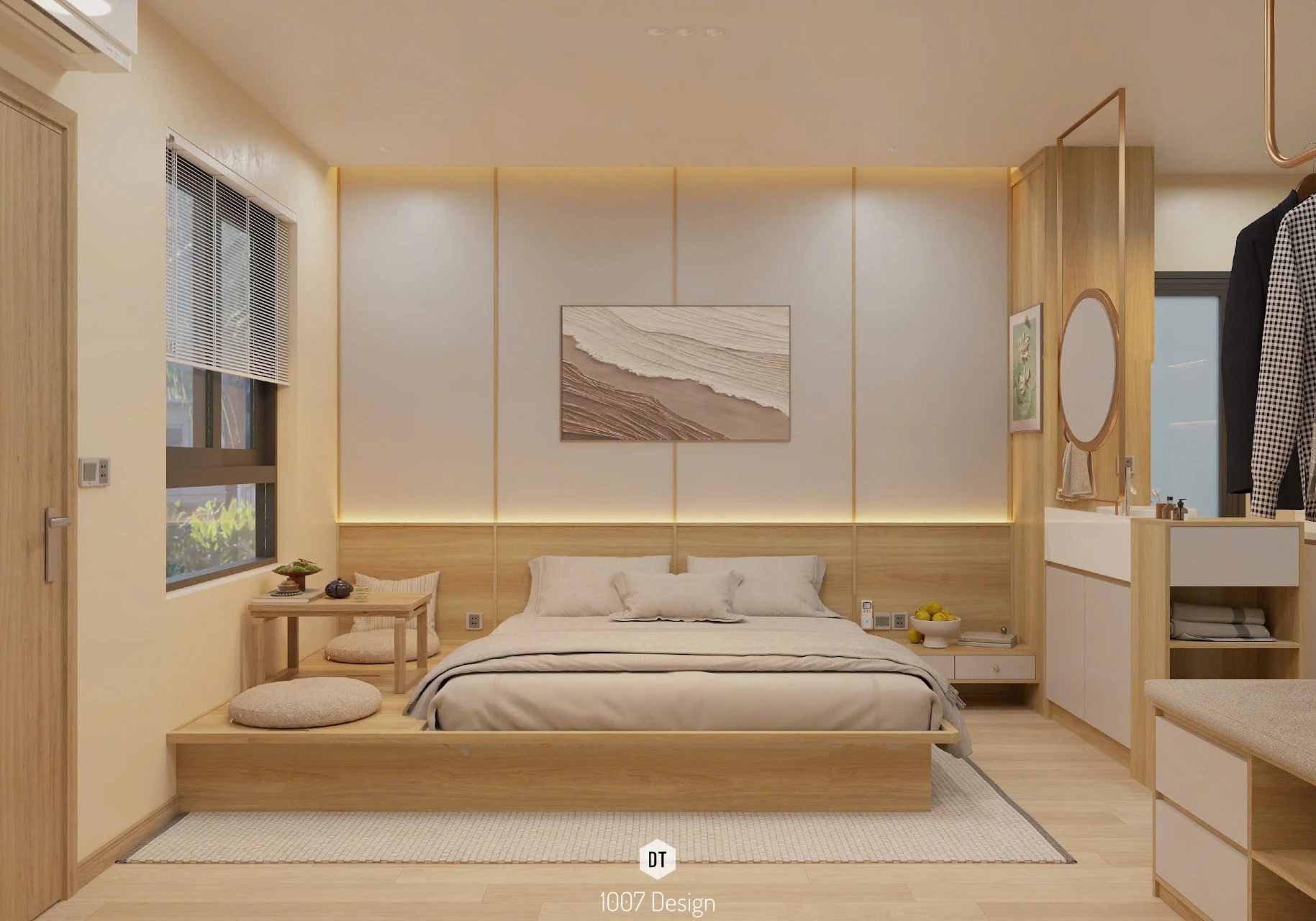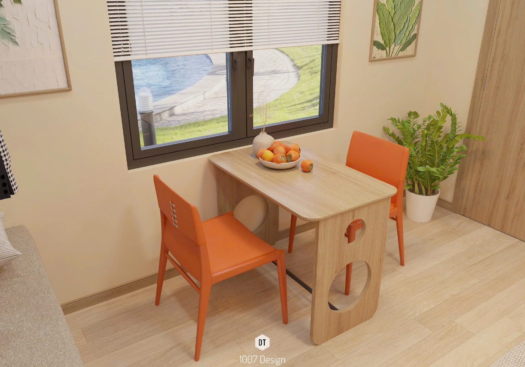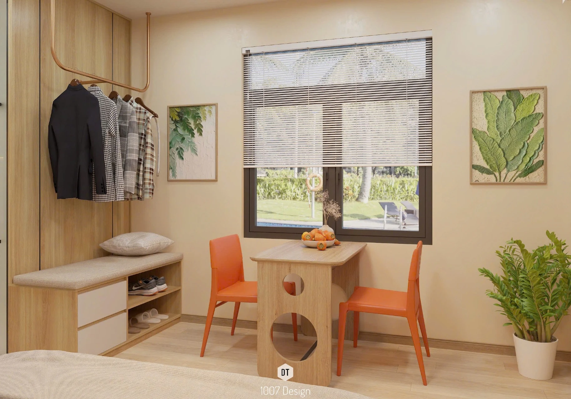 Căn studio nằm tầng 1 ngay bên cạnh hồ bơi, mở cửa kính tràn là view hồ bơi xanh mát + vườn cây thoáng đãng cả ngày. Tone màu pastel nhẹ nhàng, ánh sáng tự nhiên ngập phòng, gió lùa mát rượi, sống chậm mà vẫn sang chảnh giữa lòng thành phố/Hội An.