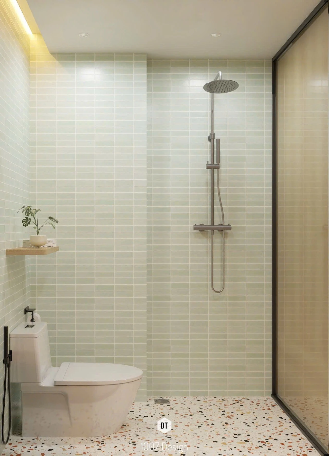 ✨ Phòng tắm kính trong suốt tone xanh mint, vòi sen mưa + bồn cầu ...