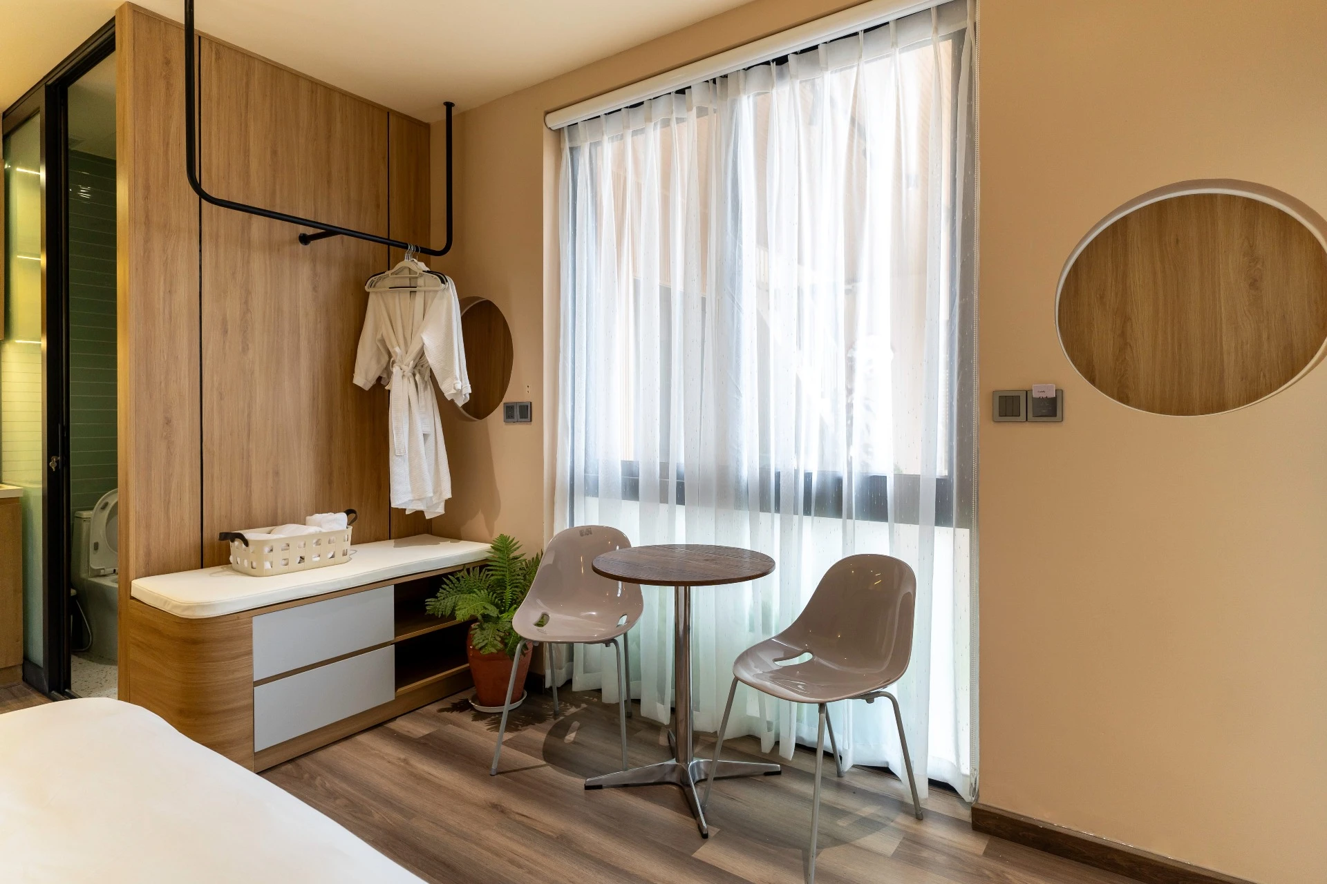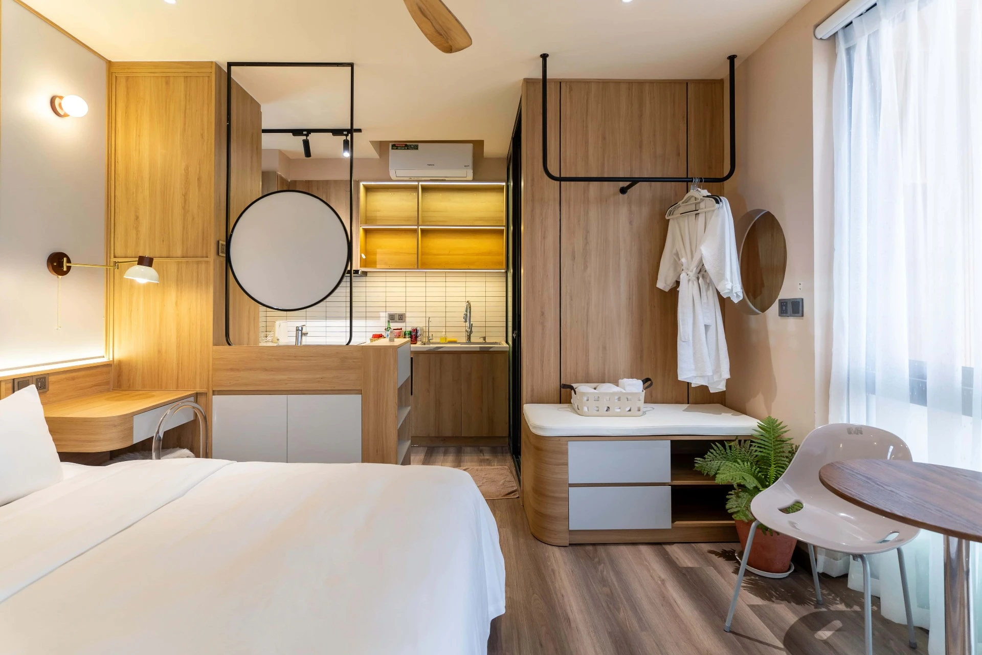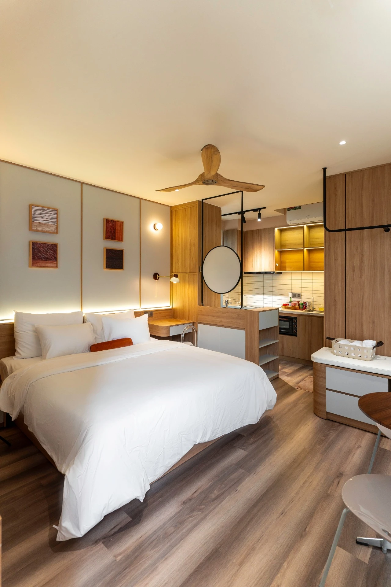 스튜디오는 수영장 바로 옆 1층에 위치해 있습니다. 유리문을 열면 시원한 수영장과 상쾌한 정원을 하루 종일 감상할 수 있습니다. 부드러운 파스텔 톤, 자연광이 가득 들어오는 공간, 시원한 바람, 여유로운 생활, 그리고 호이안 도심에서 느낄 수 있는 럭셔리함을 경험해 보세요.