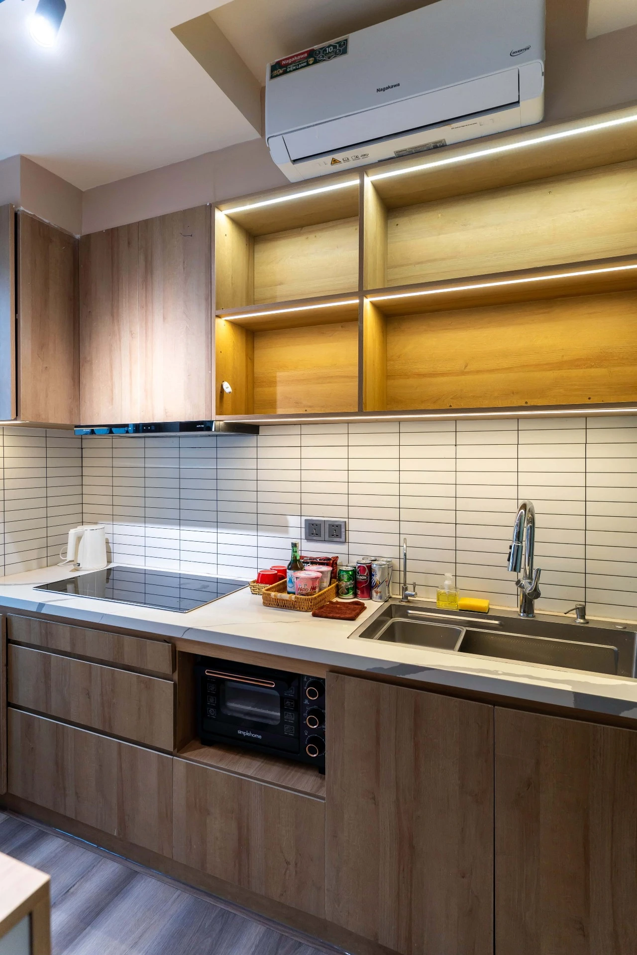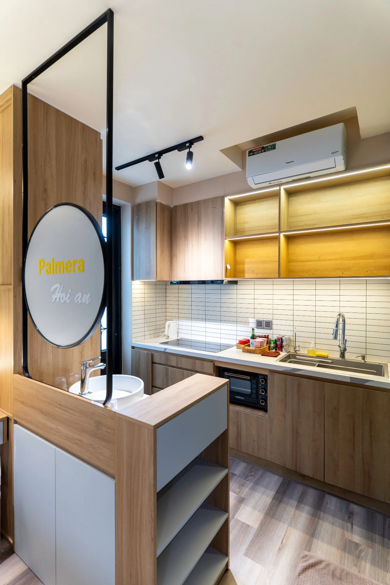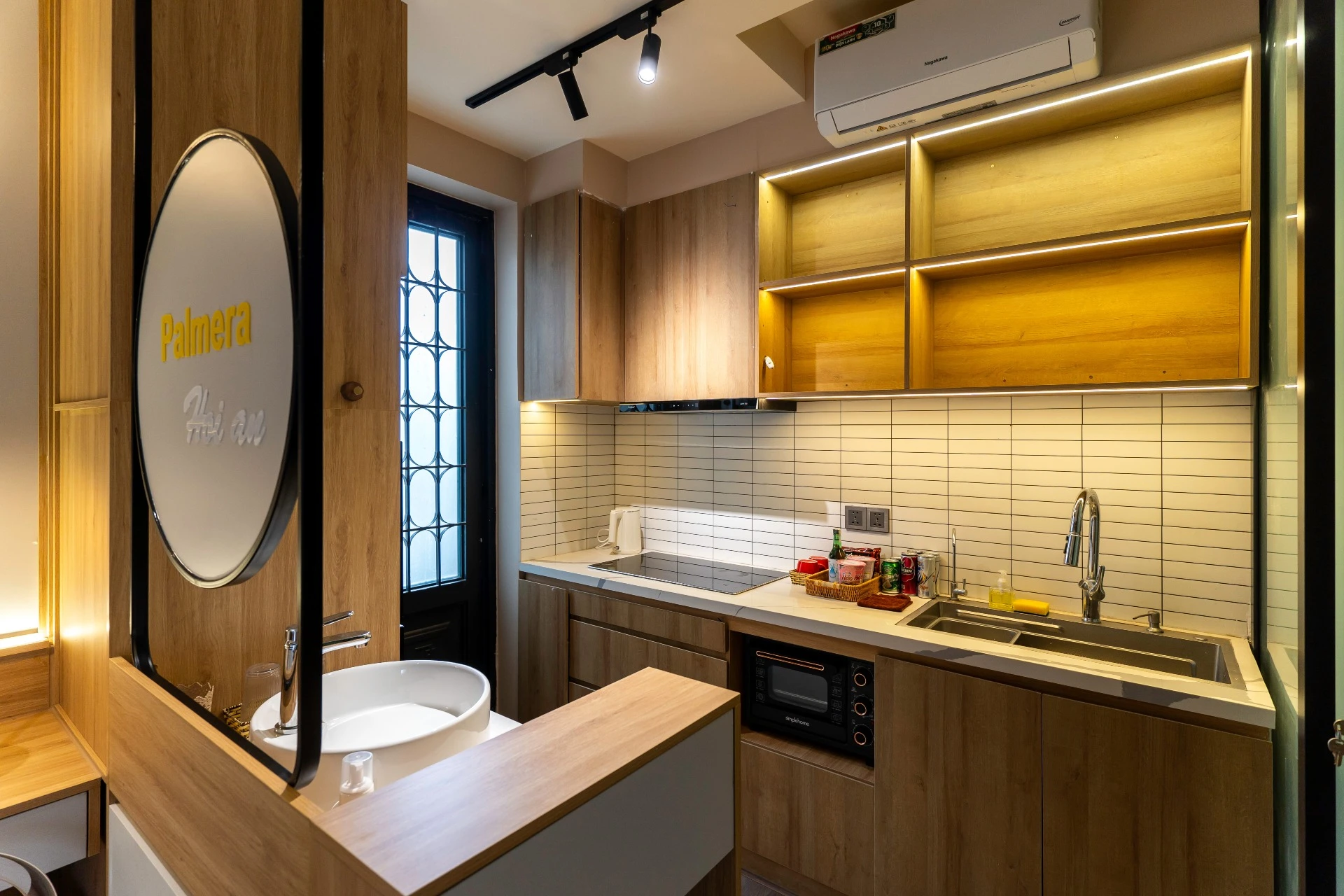 ✨ 완비된 주방: 유도 조리기, 에어 프라이어, 미니 냉장고, 냄비, 프라이팬, 칼, 도마