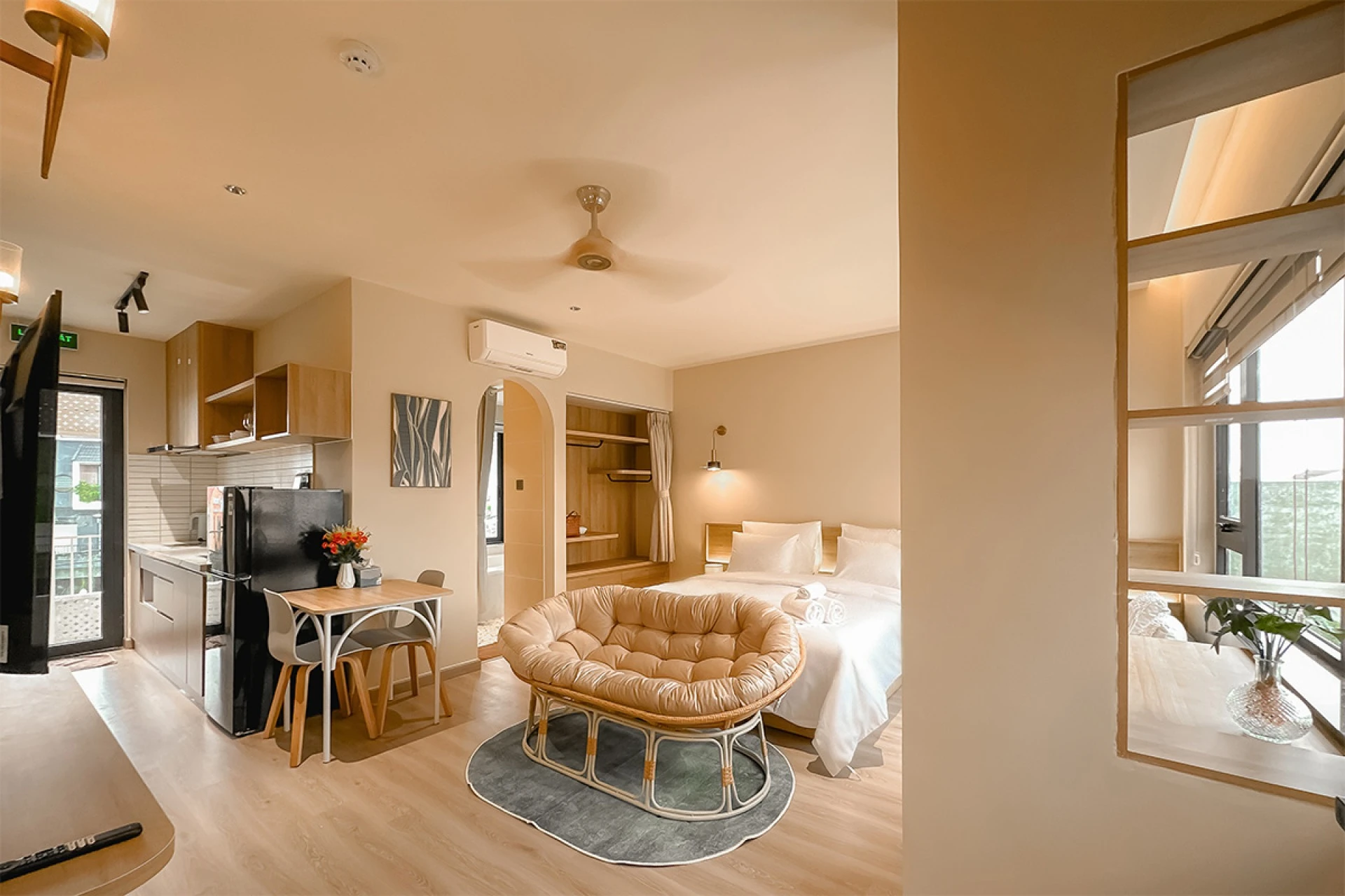 Căn hộ Studio đầy đủ tiện nghi bếp, cửa sổ rộng, balcony siêu lớn cùng bồn tắm đẹp với tầm nhìn thành phố: